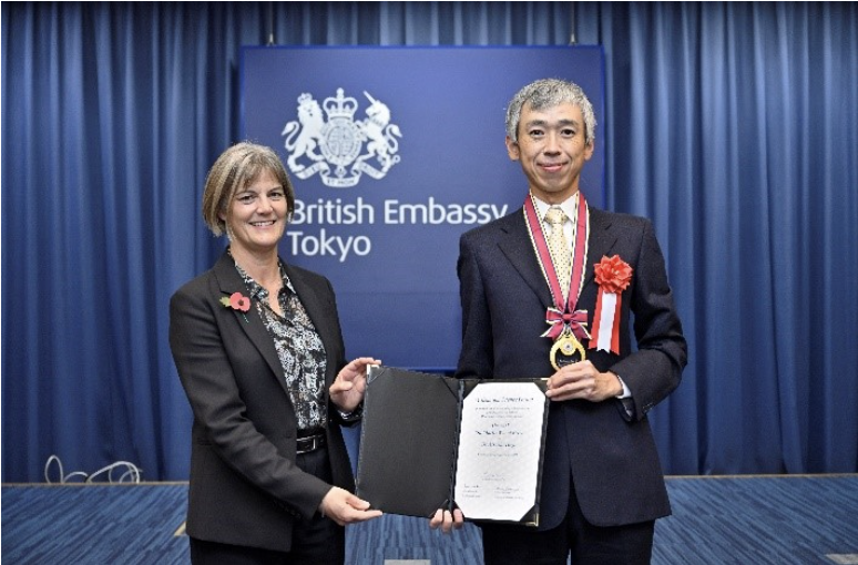 Dr Togo was awarded with the medal, certificate and a cash prize of ¥500,000 at the British Embassy in Tokyo by Ms Julia Longbottom the British Ambassador on Friday 12th November 2021 and gave a lecture on his work at the event organised by Oxford Instruments and chaired by Professor Maki Kawai from The Institute for Molecular Science.