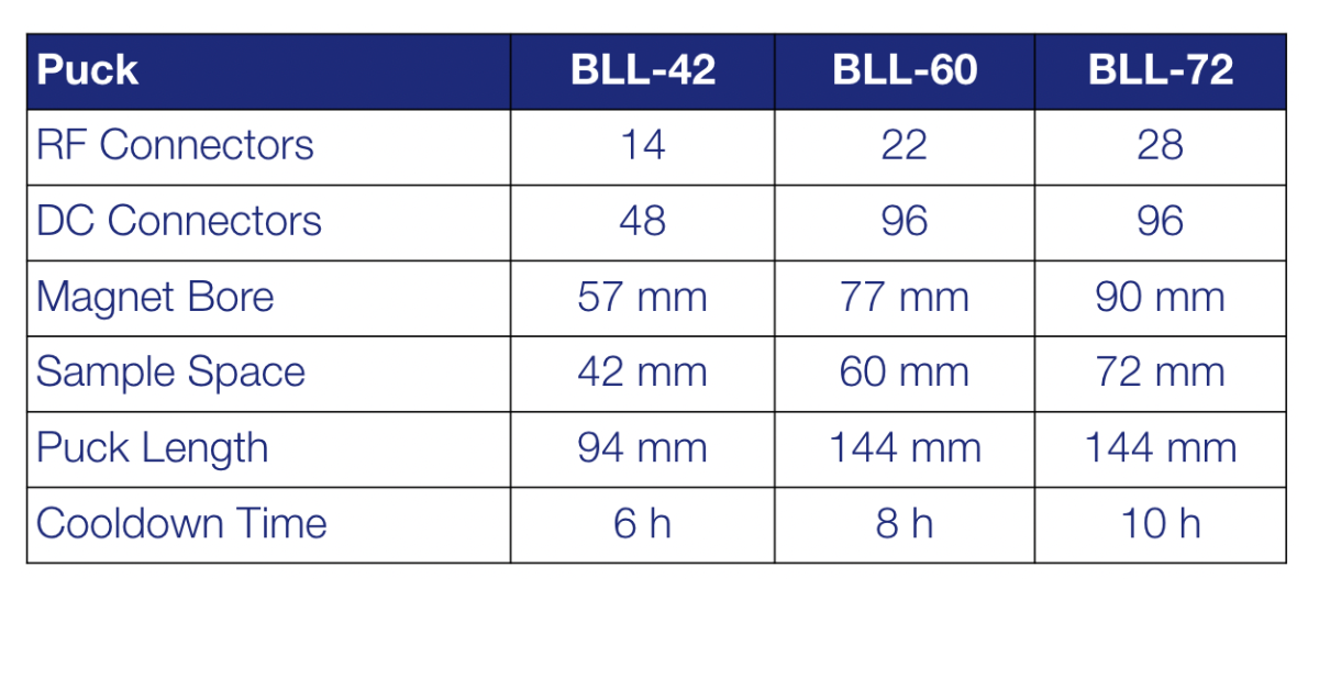 The BLL-60 puck with optical access has a sample space of 60 mm and a puck length of 144 mm.